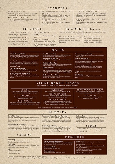 Please notifiy staff of any allergens on arrival to the pub and we can show you our allergens file which breaks down each dish to show you what if any aleergen is present